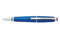 Kovový teleskopický roller Cross bez viečka v modrej farbe a lesklo chrómovanými doplnkami. Patentovaný teleskopický mechanizmus vysúvania náplne s gélovým atramentom. Náplň sa vysúva povytiahnutím za vrchnú časť s klipom. Pevný pružinový klip. Dodávané v elegantnej darčekovej krabičke.