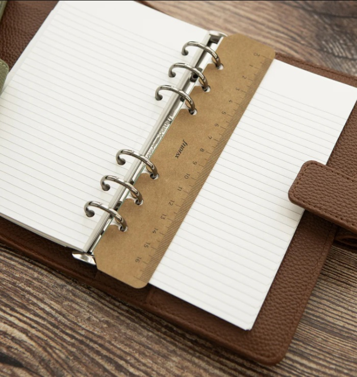 Obal z umělé kůže je vyroben ze 100% spotřebitelského recyklovaného plastu s decentní texturou zrnité kůže. Uvnitř najdete náplň Eco Classic s FSC certifikovaným 80g papírem, který je vhodný i pro plnicí pera. Výměnný obsah zahrnuje kalendář, poznámkové listy, úkoly, kontakty i praktické pravítko a záložku. Velikost náplně Personal - formát papíru 95 x 171 mm.