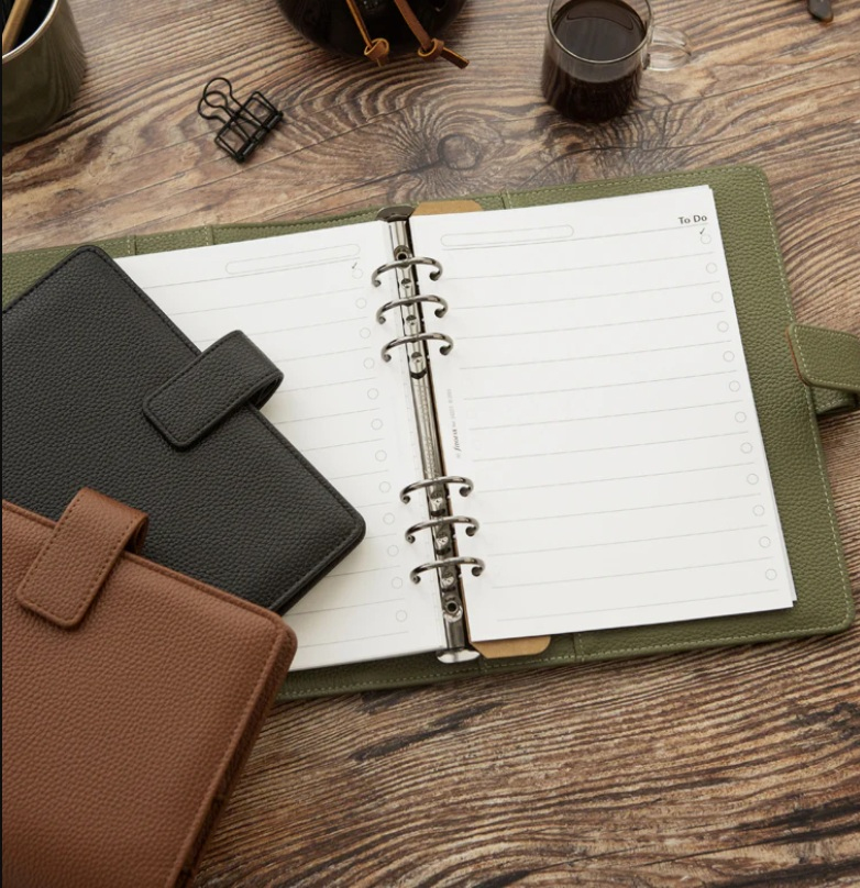 Filofax Camden osobní olivový (195 × 175 mm) je diář s výměnnou kroužkovou vazbou, recyklovaným papírem a promyšlenými vnitřními kapsami, který nabízí kombinaci udržitelnosti a každodenní funkčnosti. Vhodný pro každého, kdo hledá stylové plánování bez kompromisů.