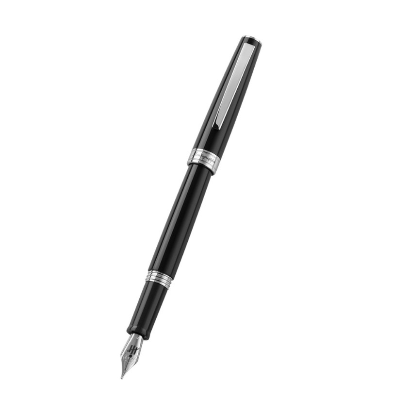 Montegrappa Armonia Black plnicí pero je luxusní psací nástroj s mosazným tělem potaženým černou pryskyřicí a ocelovým hrotem, který spojuje vyváženou hmotnost, jistý úchop a plynulé, kontrolované psaní.