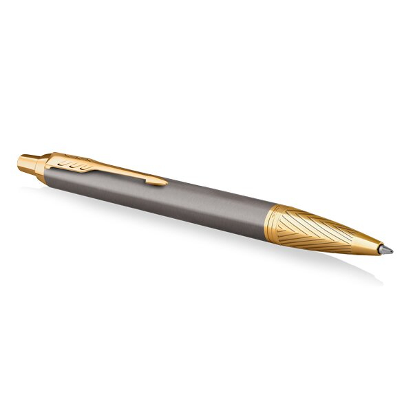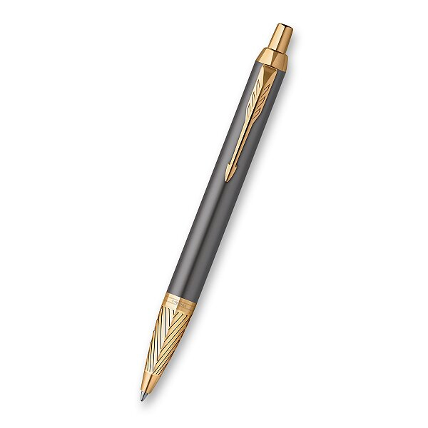 Kuličkové pero Parker Royal I.M. Premium Arrow GT má kovové tělo pokryté lesklým šedým lakem. Úchopová část má zdobnou rytinu se vzorem "šípu" vytvořeným leptáním a je pokovená 23karátovým zlatem. Doplňky jsou pozlacené pomocí techniky PVD. Stiskací mechanismus pro vysunutí velkokapacitní náplně (součástí jedna náplň). Dodáváno s černým pouzdrem a voucherem na kurz Akademie psaní v elegantní dárkové krabičce. | |||
