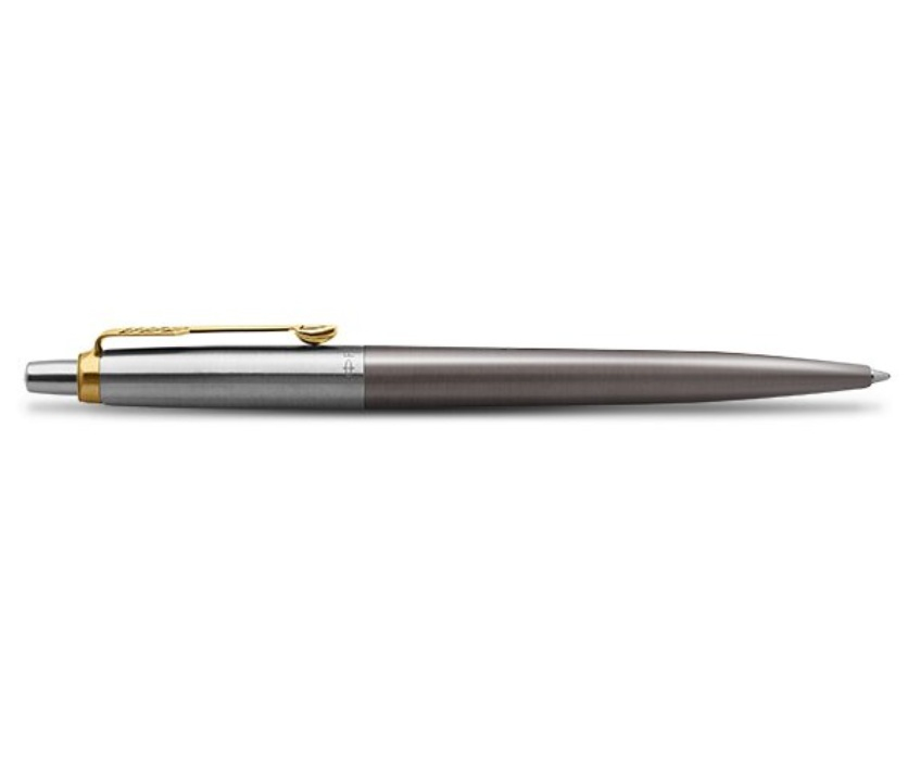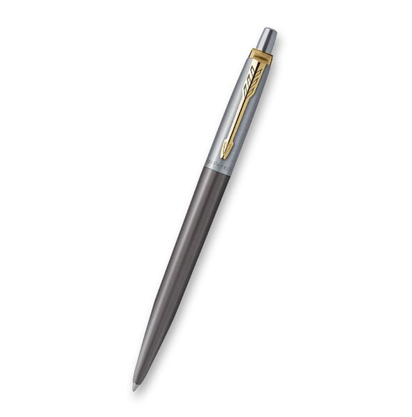 Pero Jotter XL Core Grey GT má šedě lakované tělo a víčko z broušené nerezové ocele v kombinaci s doplňky pokovenými zlatem. Kuličková tužka je opatřena stiskacím mechanismem pro vysunutí velkokapacitní náplně. Součástí balení jedna náplň.