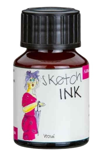 Prvotriedny atrament Sketchink (50 ml) od Rohrer & Klingner v ružovej farbe. Je veľmi všestranný - možno ho použiť nielen v plniacich perách, ale aj so štetcami alebo kaligrafickými brkami. Je výnimočne vodeodolný a svetlostály. Na optimálny tok atramentu sú použité nano pigmenty. Vďaka tomu je Sketchink ideálny na kreslenie jemných obrysov. Pri miešaní s vodou je možné vytvoriť brilantné odlesky, čo z neho robí ideálneho spoločníka pre Urban Sketchers. Ocenia ho aj dizajnéri, grafici a architekti. Dodávané v sklenenej fľaštičke.