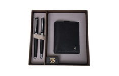 Darčeková sada plniaceho a guľôčkového pera Scrikss Honour Black CT a koženého vizitkáre. Plniace pero je dodávané s hrotom M a súčasťou balenia je konvertor a 2 bombičky. Guličkové pero má otočný mechanizmus pre vysunutie veľkokapacitné modré náplne. Dodávané v luxusnej darčekovej krabičke.