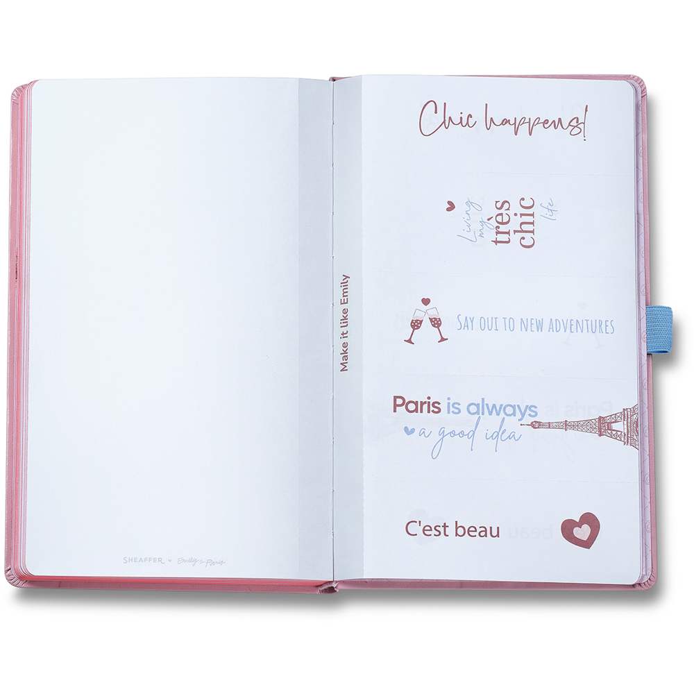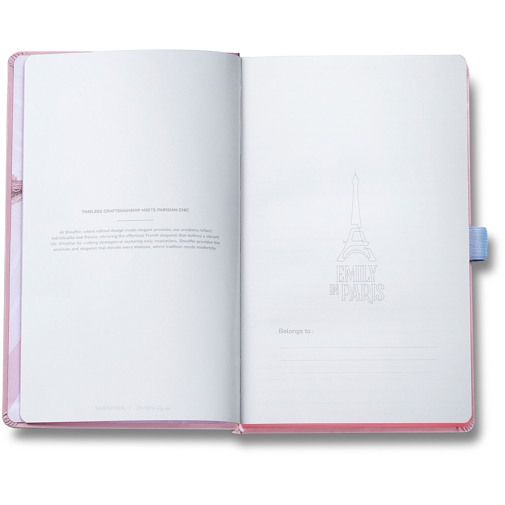 Sheaffer Pink Emily in Paris zápisník ve velikosti A6 je jako deník s francouzským akcentem. Pevná vazba, hladké stránky a decentní Eiffelovka na obálce vám každý den připomenou, že i běžné poznámky mohou vypadat výjimečně.