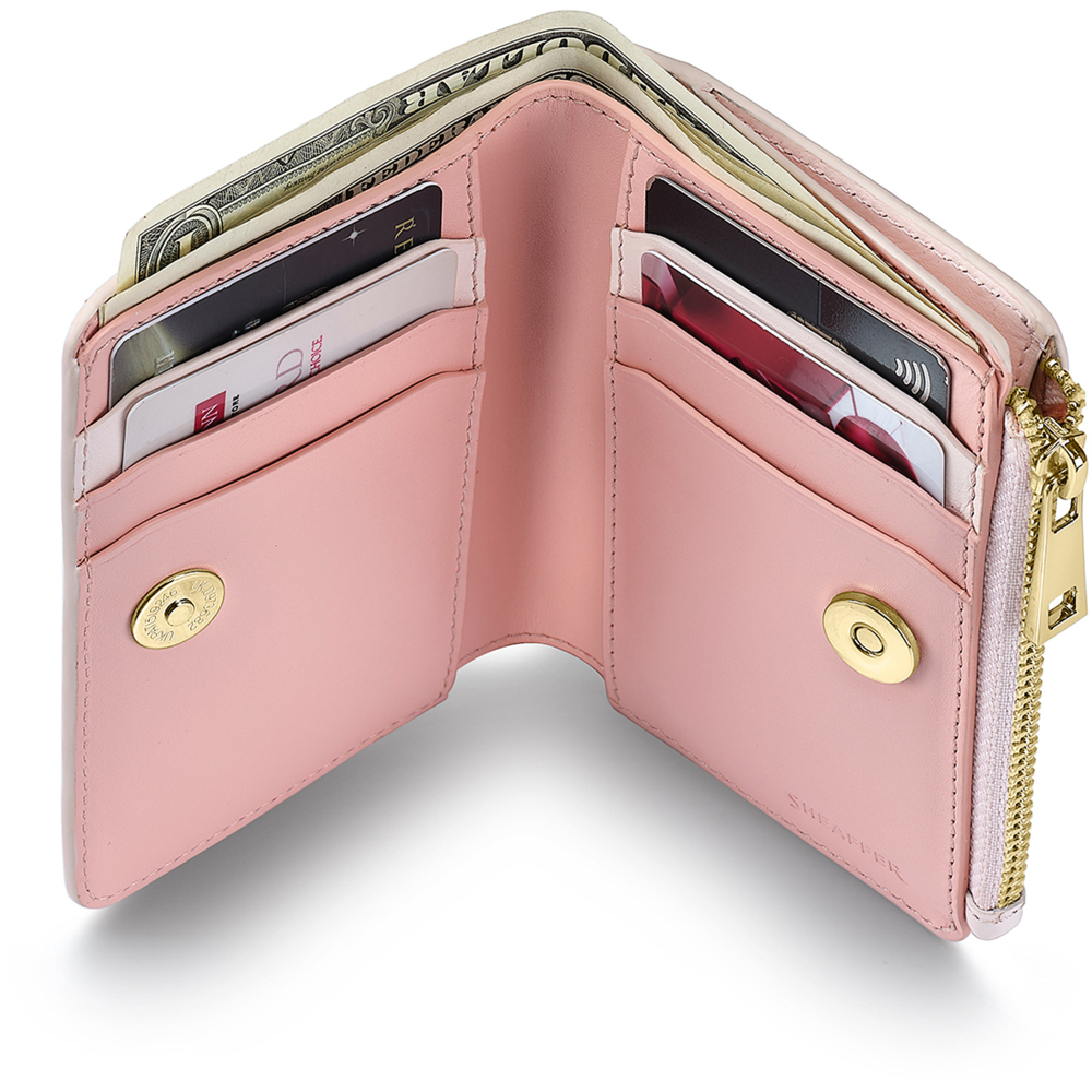 Kožená peněženka Sheaffer Emily in Paris v růžové barvě je jako outfit do města, ale v kapesním formátu. Dvoutónová růžová kůže, zlaté srdce a promyšlený vnitřek s kapsou na drobné – tenhle doplněk neřeší jen styl, ale je i praktický.