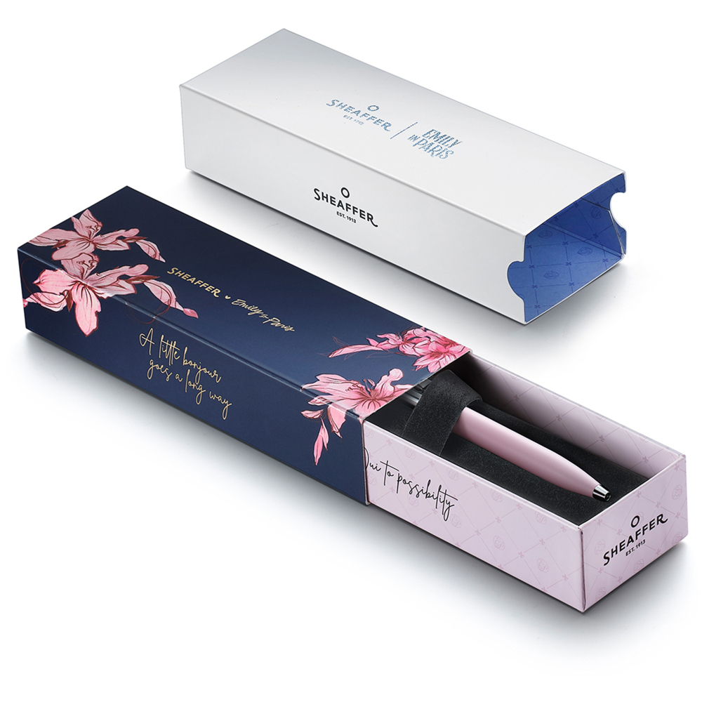 Emily vtrhla do Paříže se šarmem, nadhledem a citem pro styl – a přesně to přináší i nová kolekce per Sheaffer Emily in Paris. Vdechněte svým slovům francouzskou eleganci a lehkost Říma, Paříže či Benátek. Objevte spojení módy, moderní elegance a psací tradice. S těmito pery bude každý podpis malým momentem glamour.