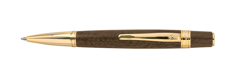 Guľôčkové pero X-Pen Lord v atraktívnej kombinácii dreveného tela a pozlátených doplnkov. Otočný mechanizmus pre vysunutie náplne. Dodávané v luxusnej darčekovej krabičke.